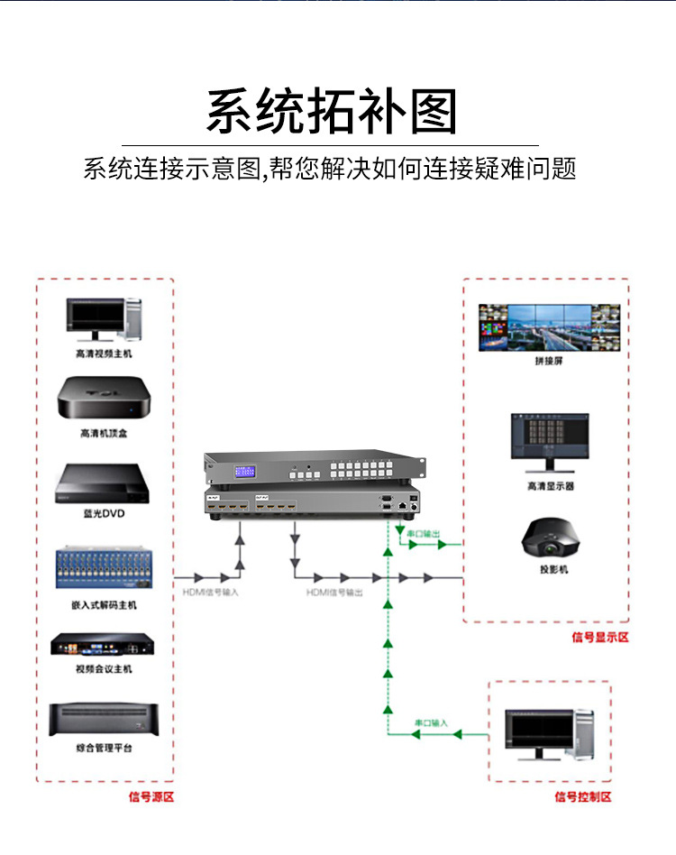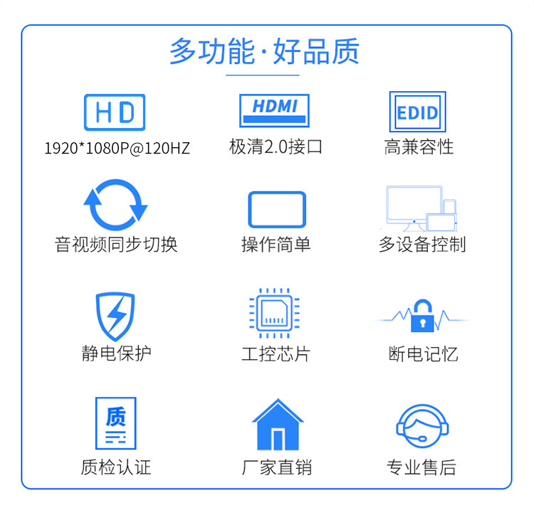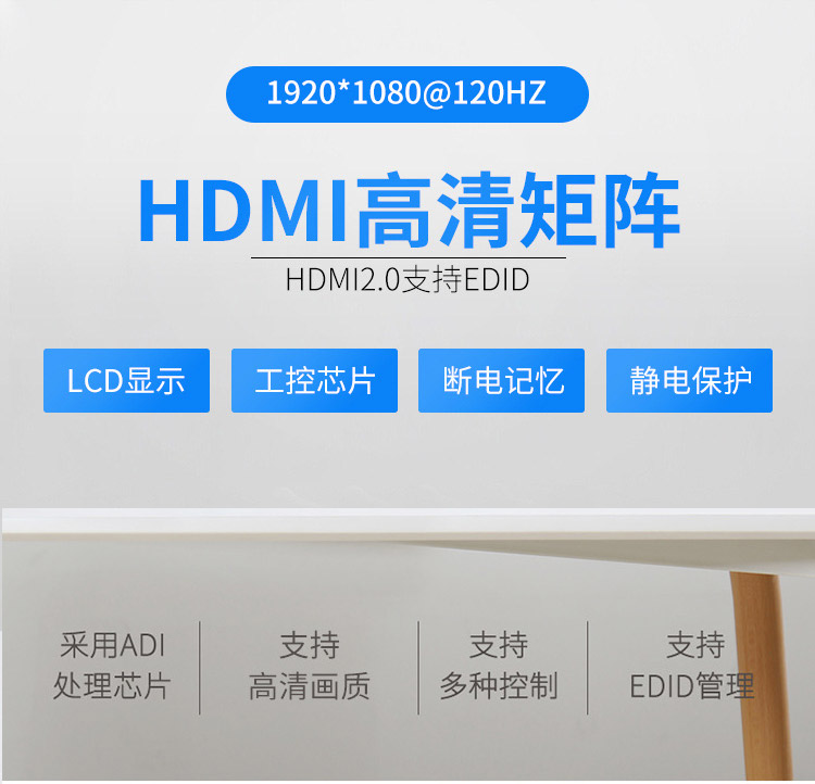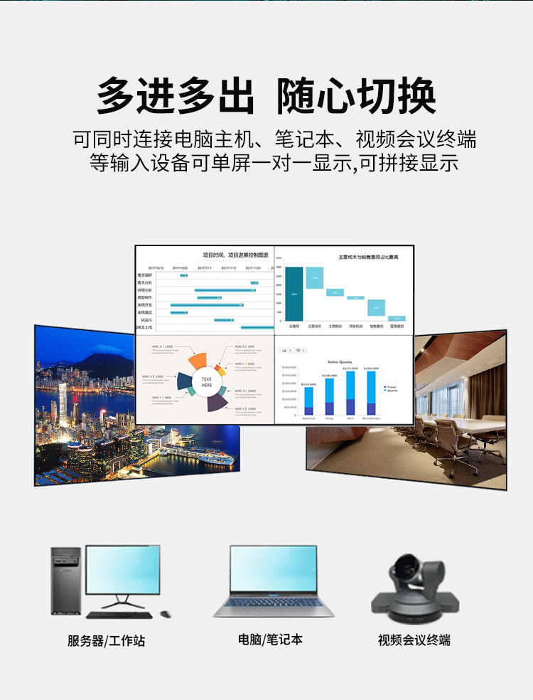 切换功能:200ns无缝切换,支持多屏拼接,交叉显示,分配显示;